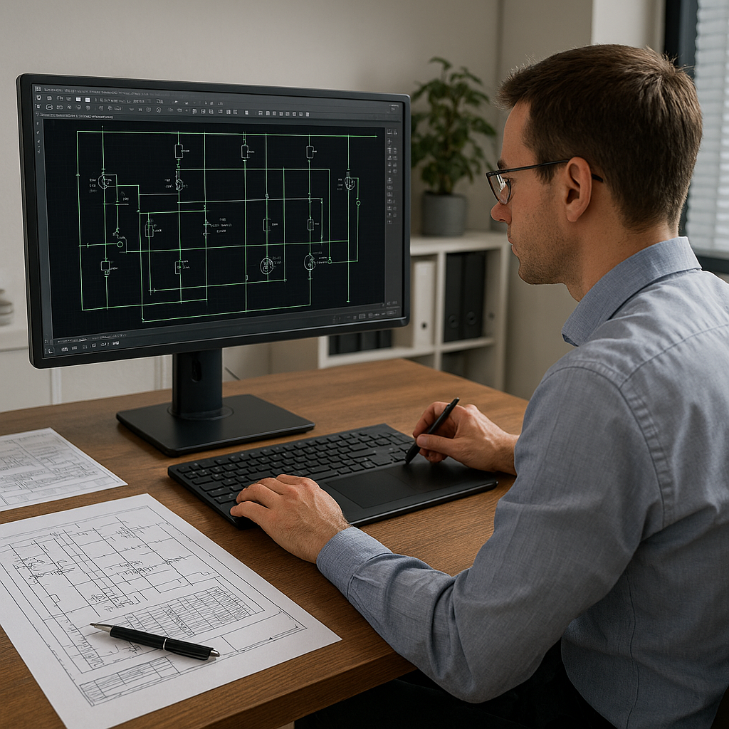 Ulusal ve uluslararası standartlara uygun mühendislik tasarımları hazırlıyoruz. Elektrik şemaları, tek hat diyagramları, yük analizleri ve detaylı çizimler ile projelerinizi eksiksiz şekilde planlıyoruz. Böylece, uygulama aşamasında hata riskini ortadan kaldırıyoruz.